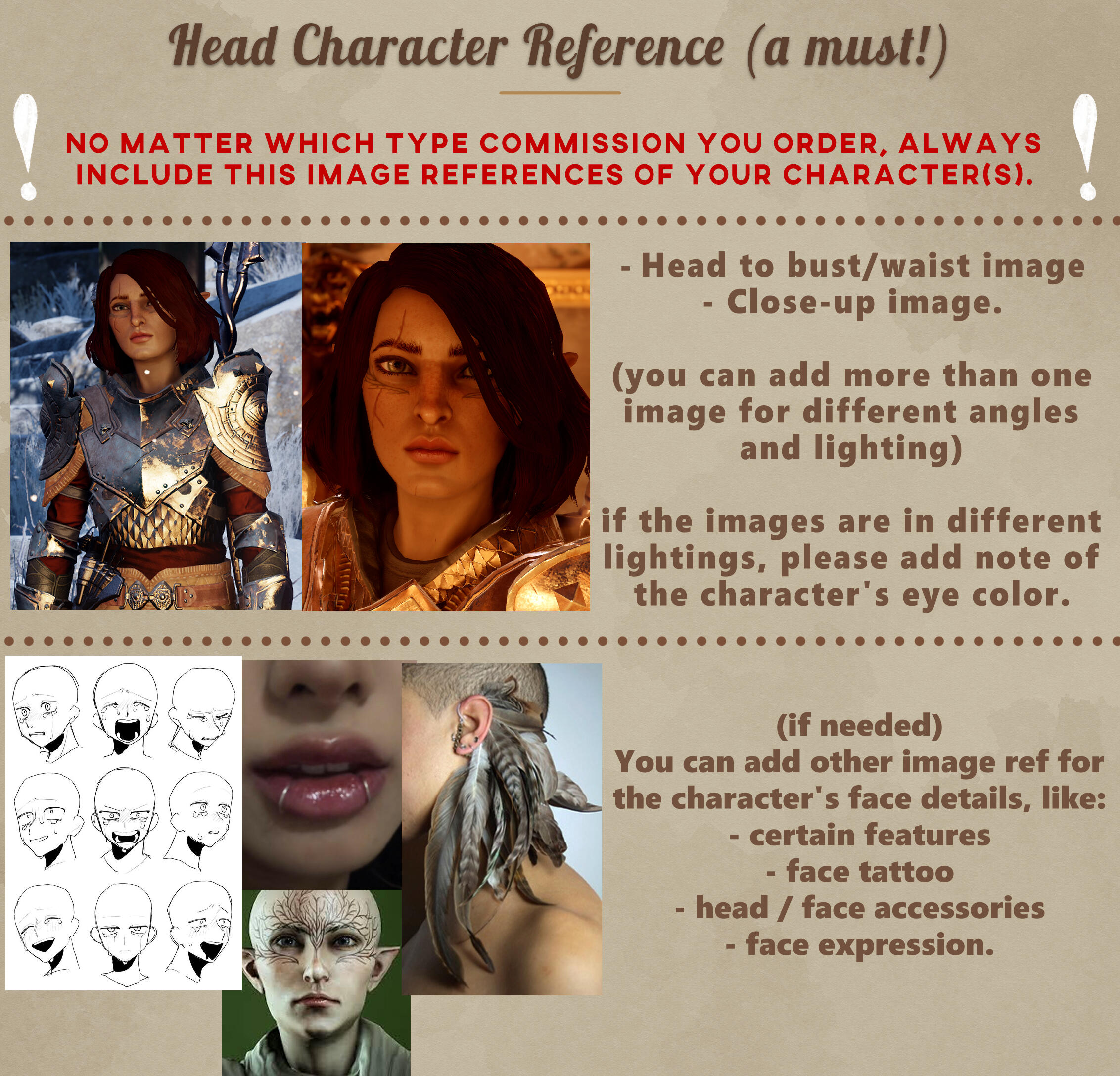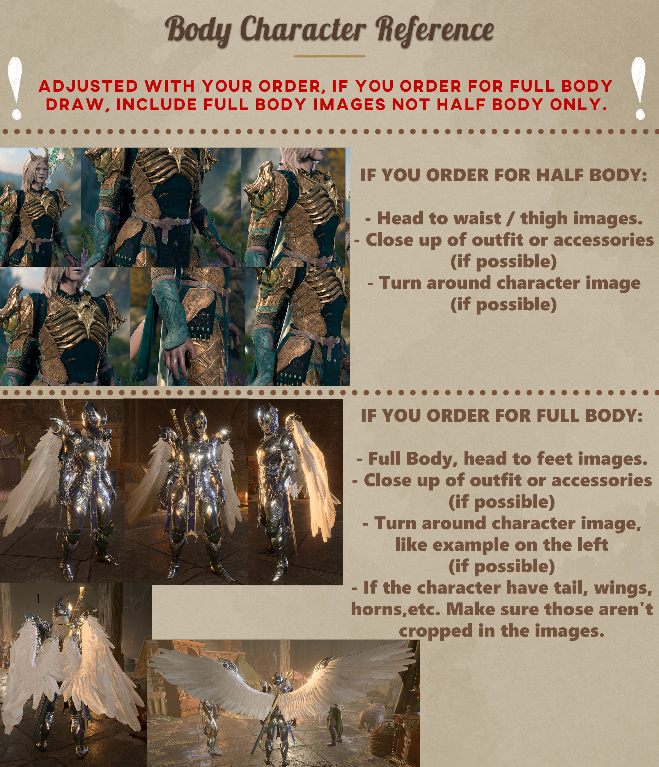 picture reference, this must be clear and not blurred or pixelated, and adjusted with your order (ex. you order full body tarot card but you only send me bust picture of the character)